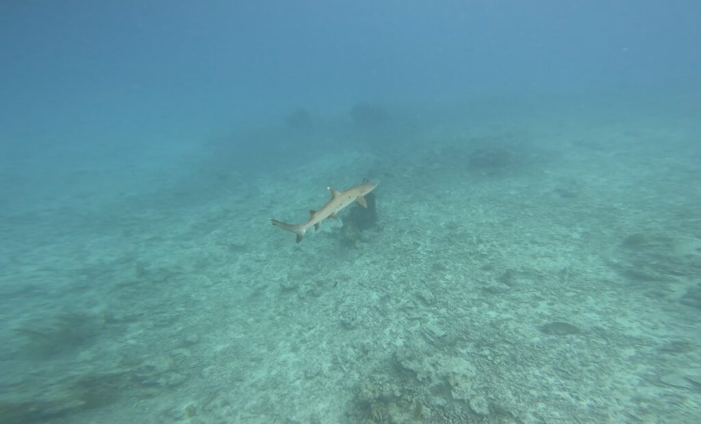 一本目竹富のポイントでホワイトチップシャークを発見!